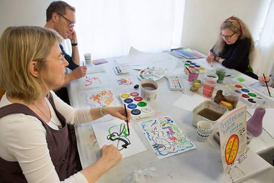 “För dig som vill komma igång att måla eller som redan målar men vill hitta ny inspiration.– Lekfulla övningar och en tillåtande atmosfär underlättar för dig att hitta ditt sätt att uttrycka dig”